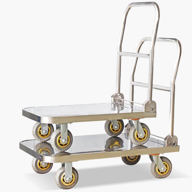 不锈钢手推车折叠拉货小推车轻音可携式平板推车304加厚载重搬运