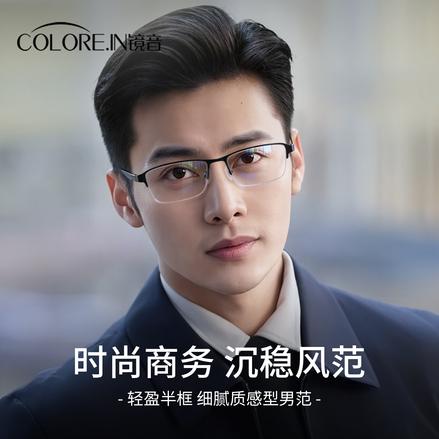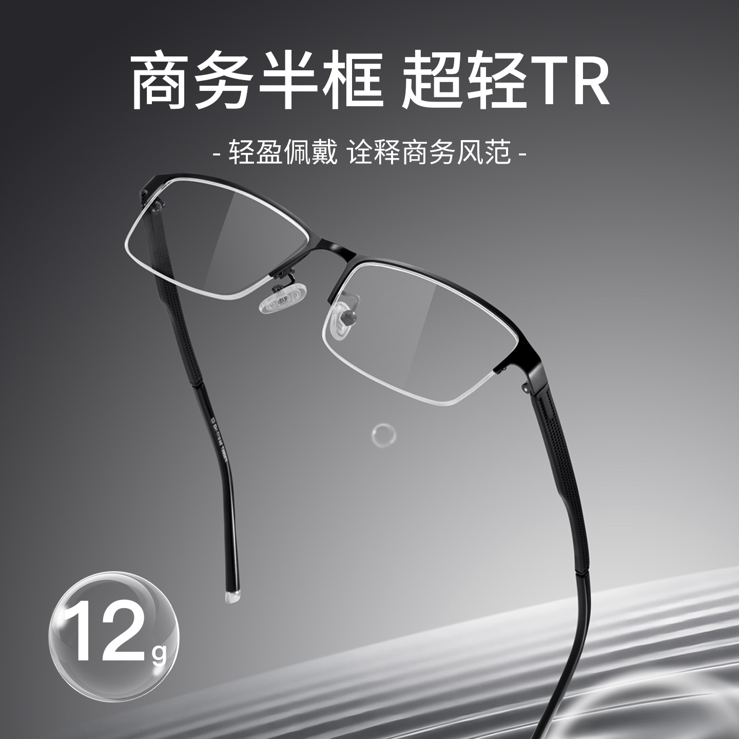 镜音黑色商务半框眼镜男款近视可配度数超轻舒适平光防蓝光眼睛架