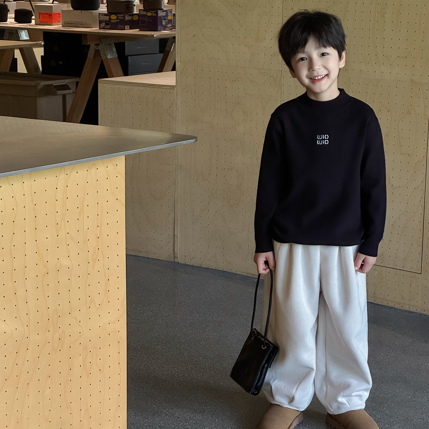 童酷2025男童冬季新款时尚字母刺绣宝宝针织衫半高领打底儿童