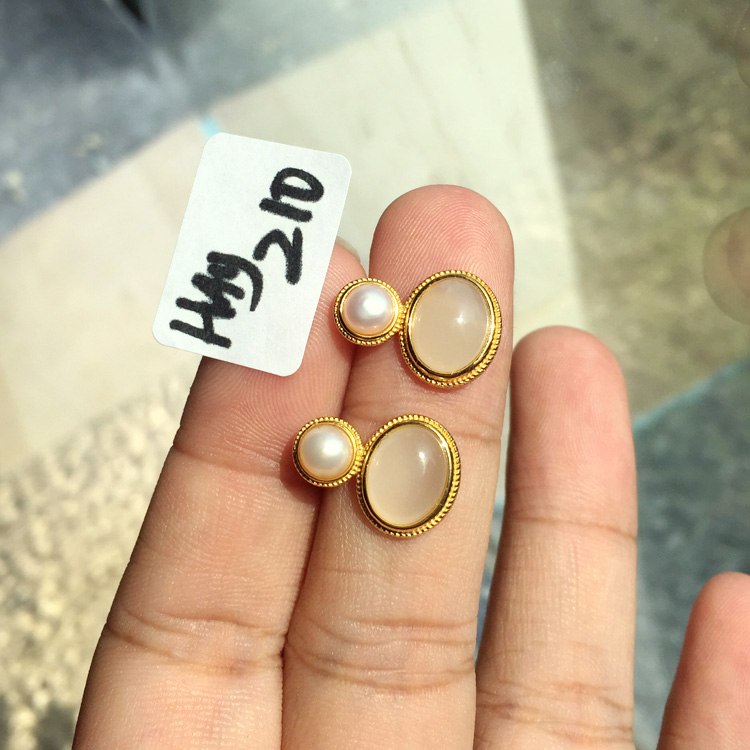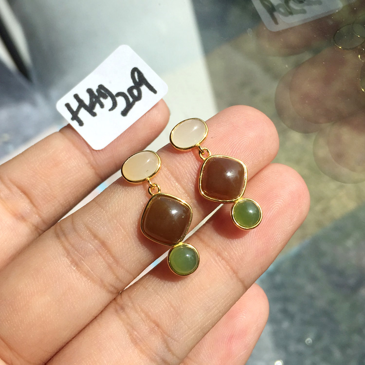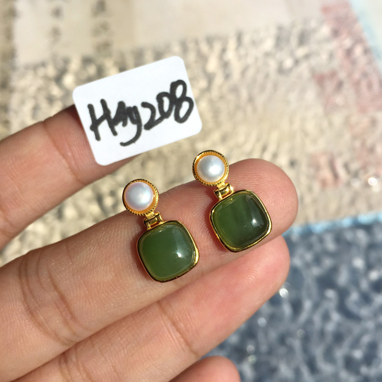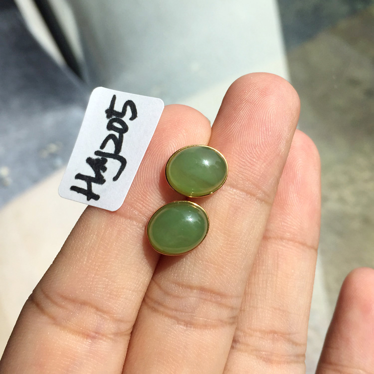 Sweet配饰 天然和田玉碧玉糖玉白玉耳钉 简约大气S925银镶嵌 包邮