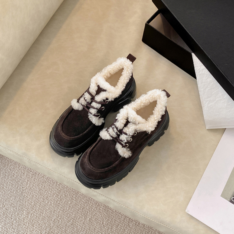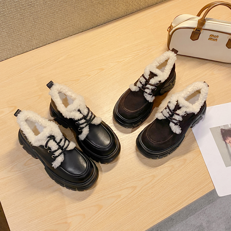厚底加绒乐福鞋女真皮小码313233内增高小皮鞋新款保暖玛丽珍单鞋