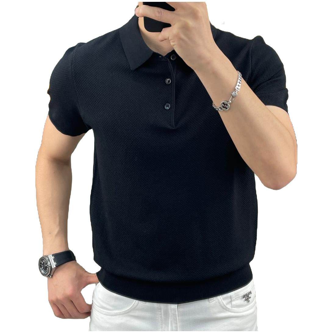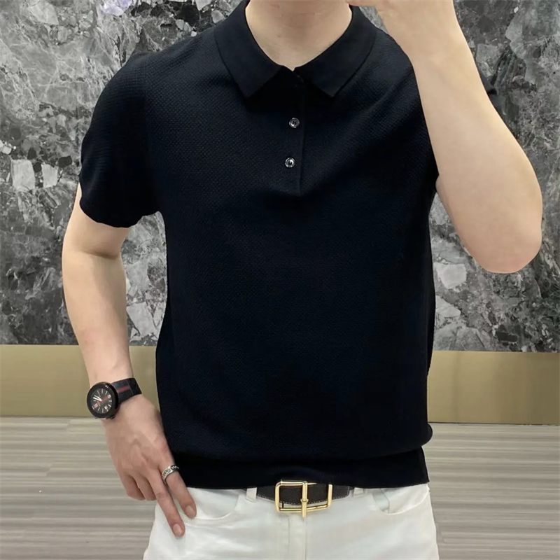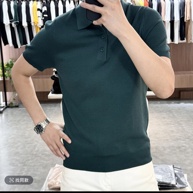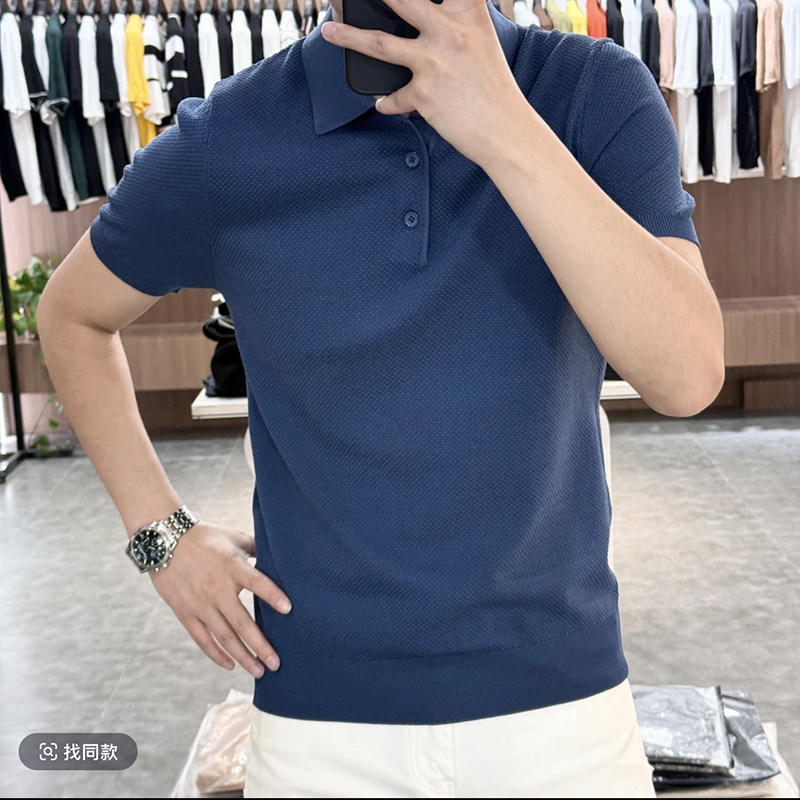 2025男士夏季冰丝POLO衫短袖t恤针织新款个性纯色薄款简约翻领潮