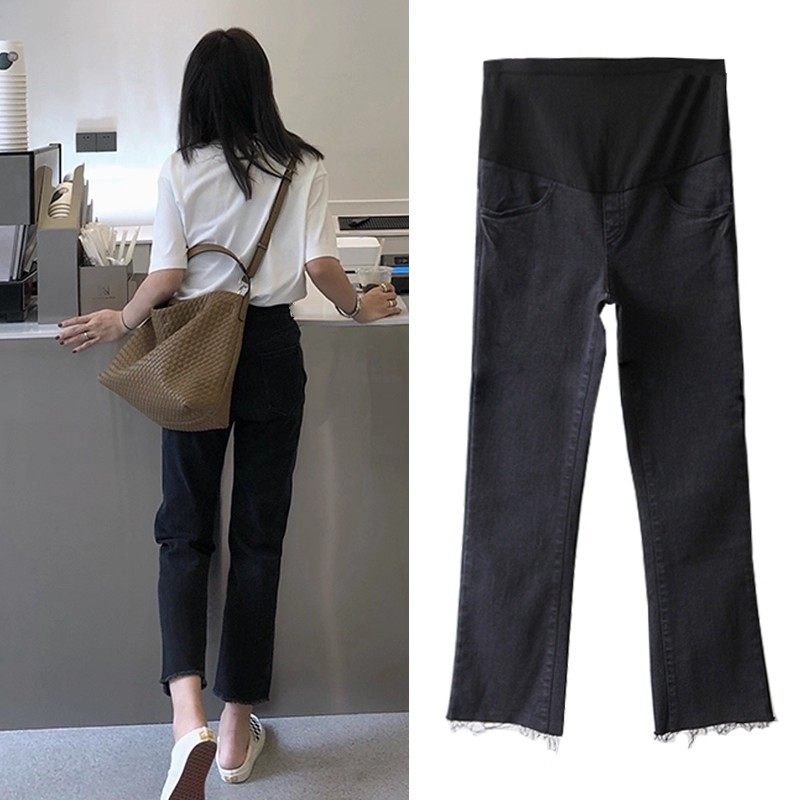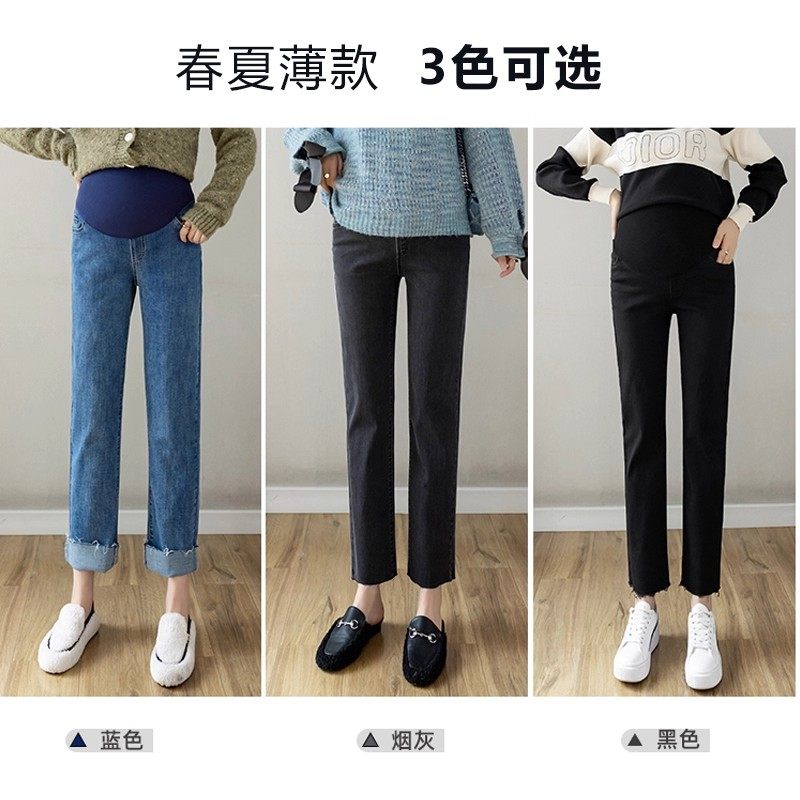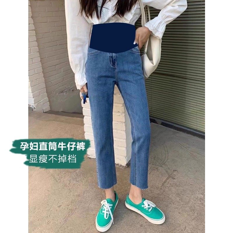 孕妇毛边直筒牛仔裤子九分春秋季薄款外穿2025新款托腹烟管打底裤