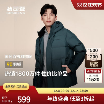 波司登官方奥莱冬季男经典休闲百搭短款连帽宽松保暖加厚羽绒服