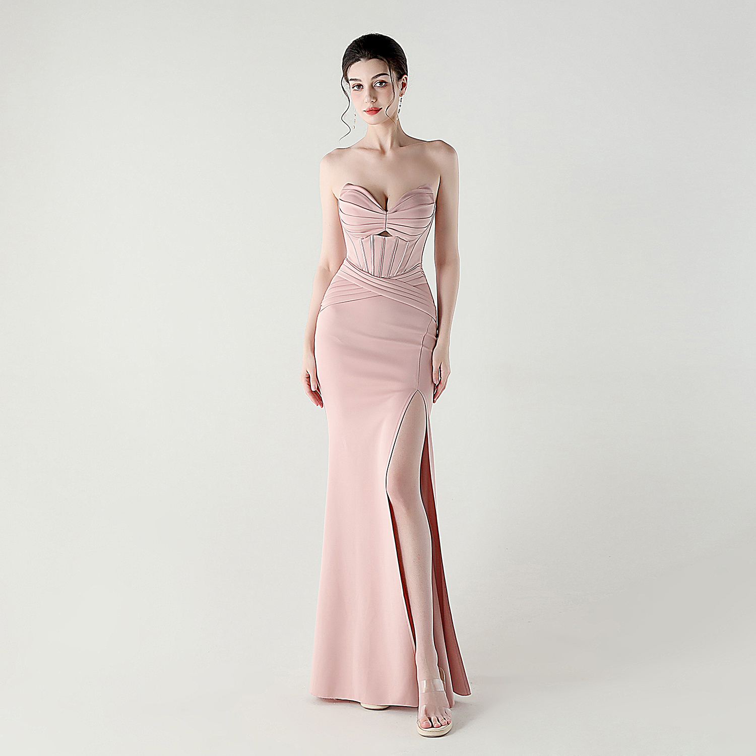 法式晚礼服女2025新款高端轻奢高级感抹胸裹胸一字肩性感长款裙子