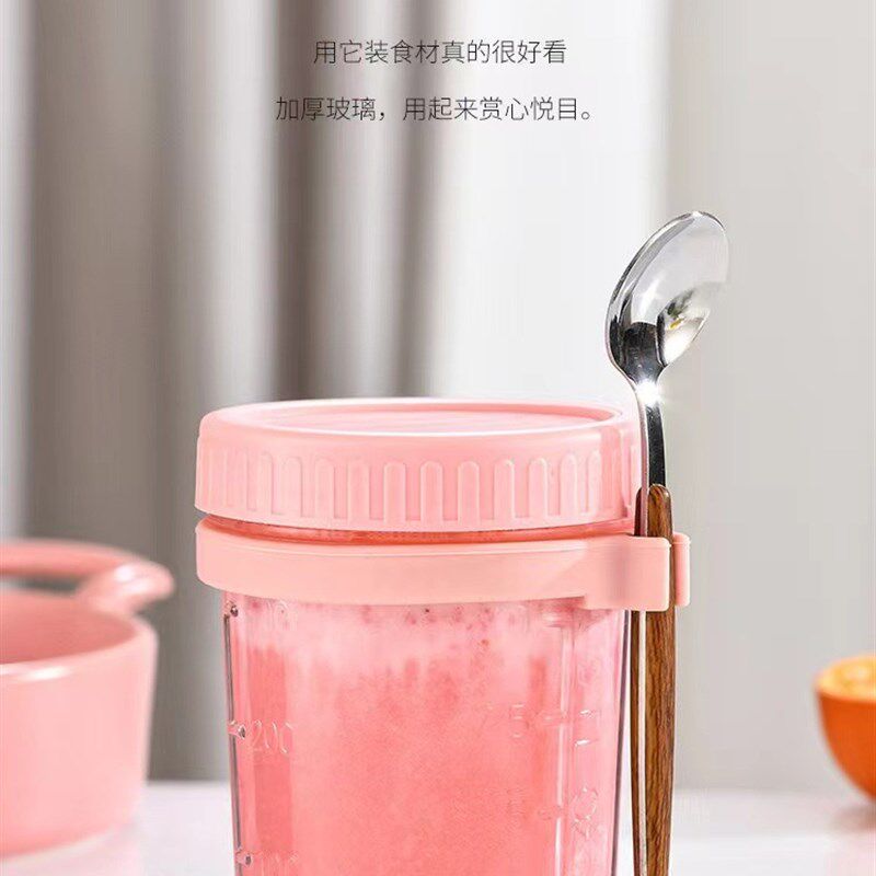 燕麦早餐杯耐热玻璃便携带盖勺沙拉杯儿童喝酸奶豆浆柄刻度牛奶杯
