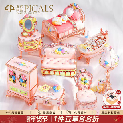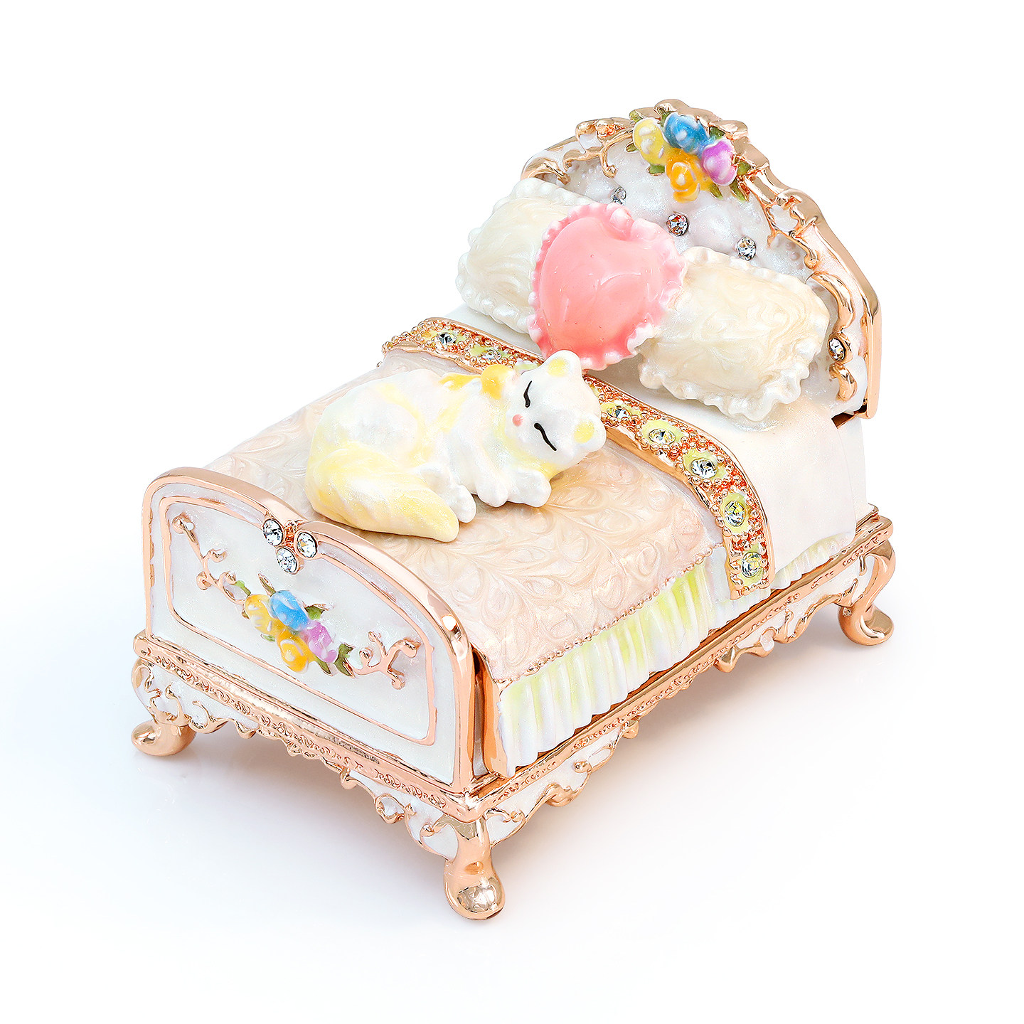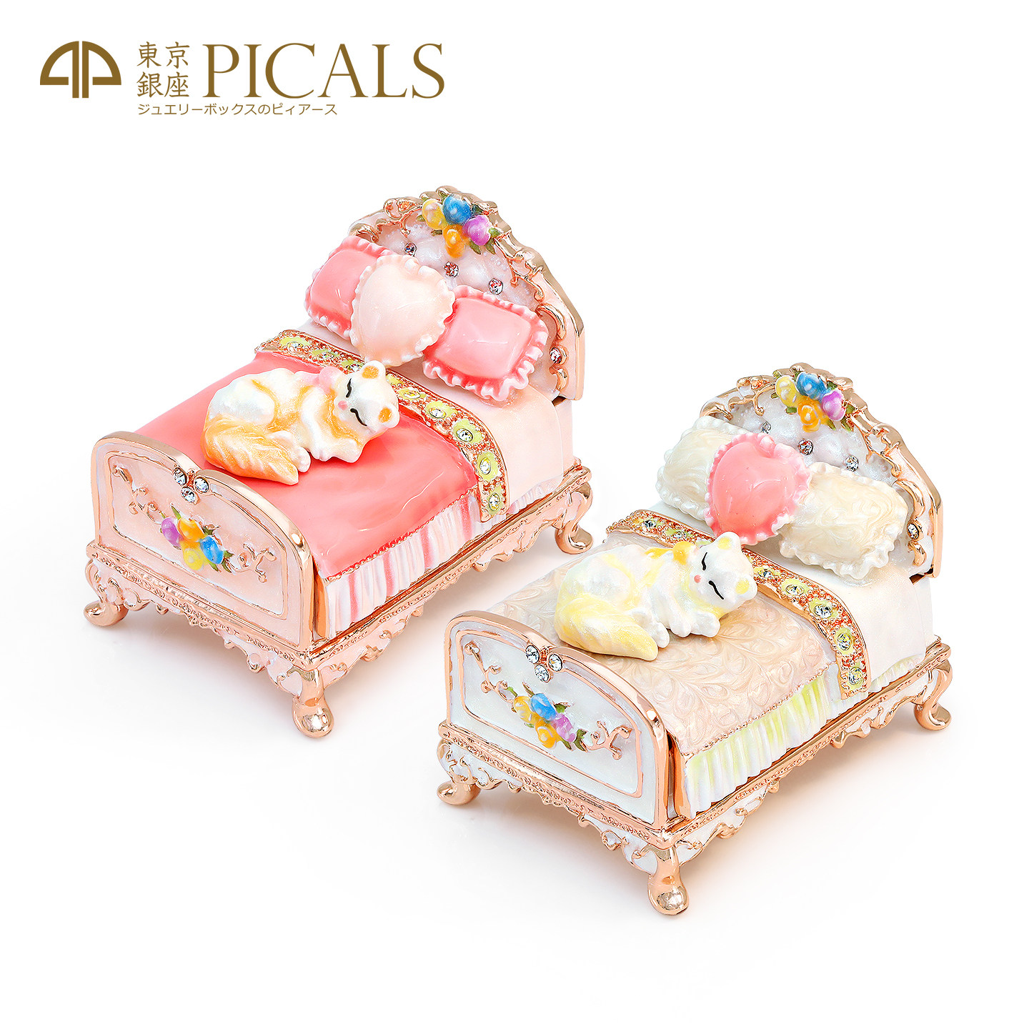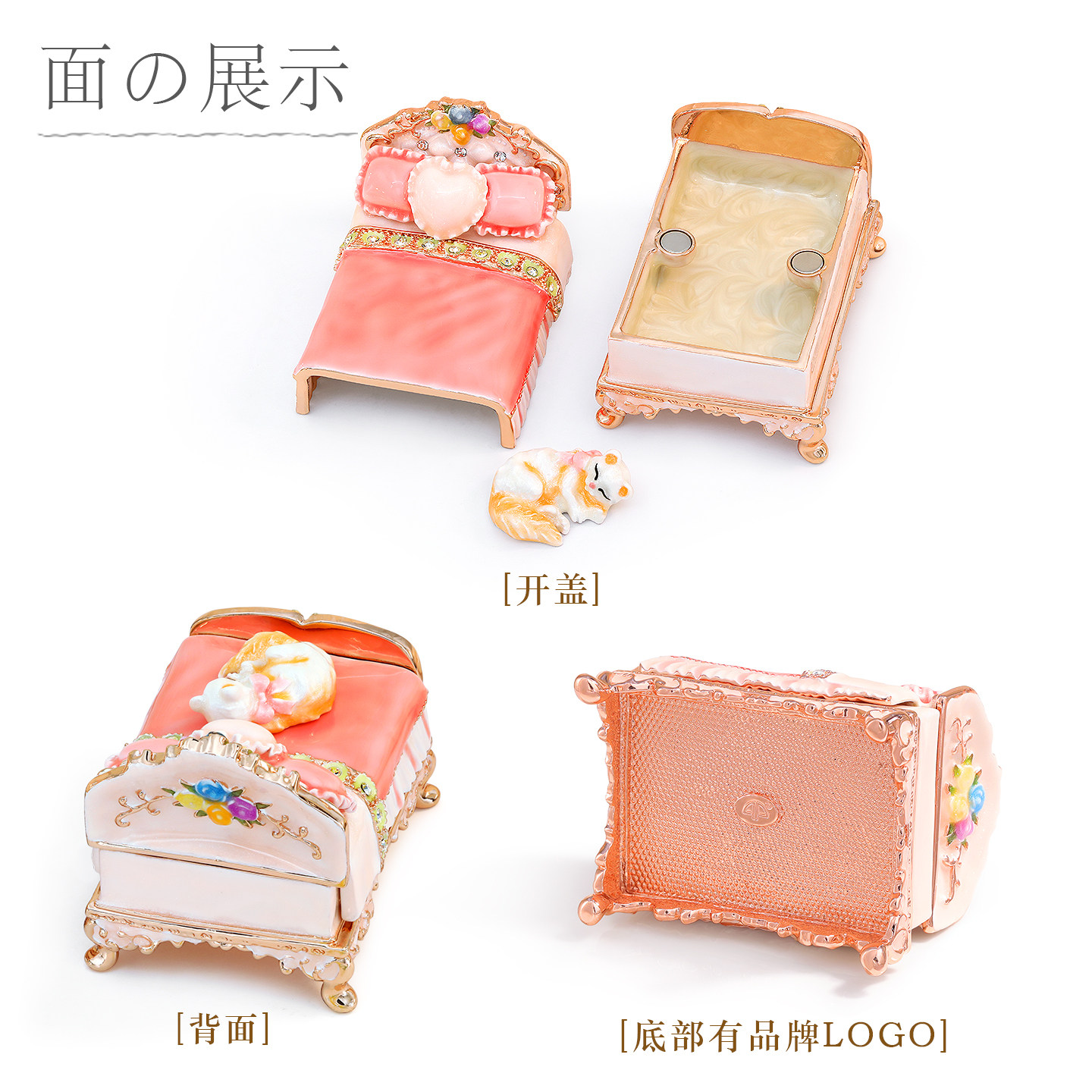 picals首饰盒欧式珐琅彩猫咪床饰品盒高档创意戒指盒新年礼物摆件