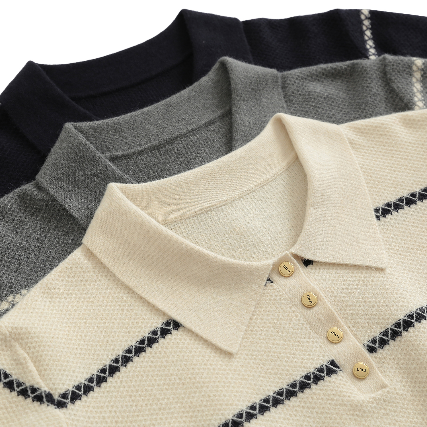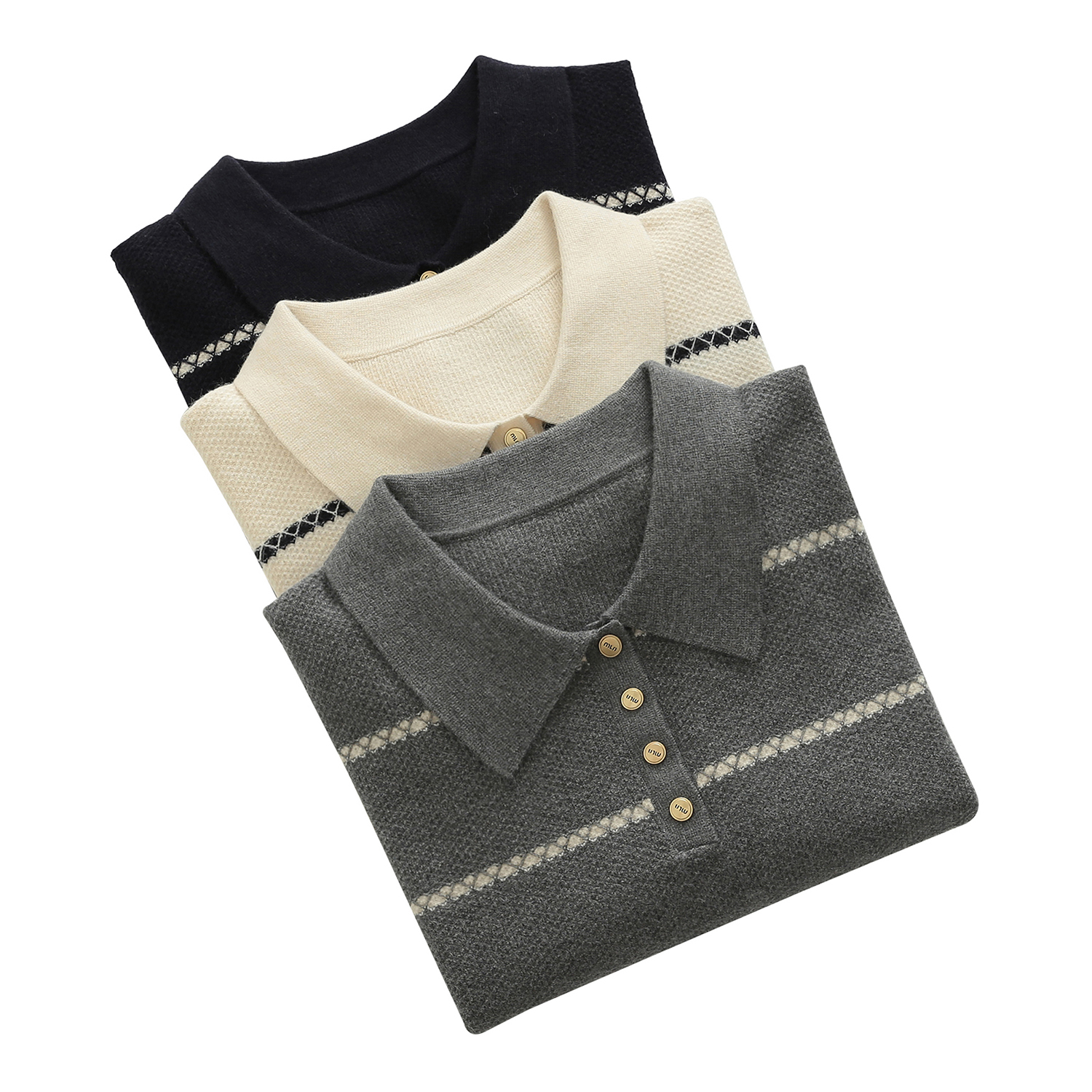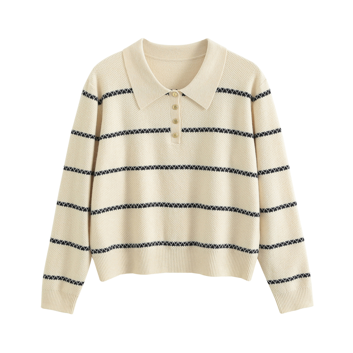 11.11 韩系Polo翻领条纹休闲针织衫秋冬宽松显瘦柔软套头毛衣女