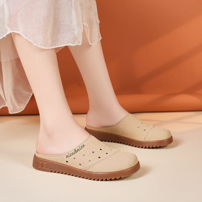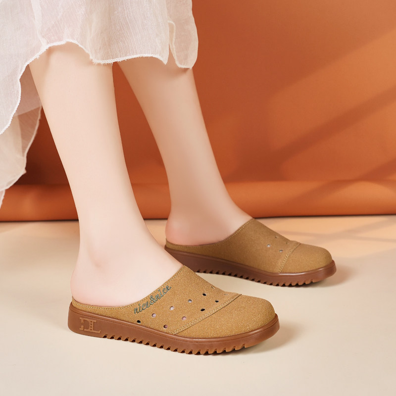 休闲勃肯半拖鞋女夏外穿孕妇大码41到42包头洞洞凉鞋软底妈妈凉拖
