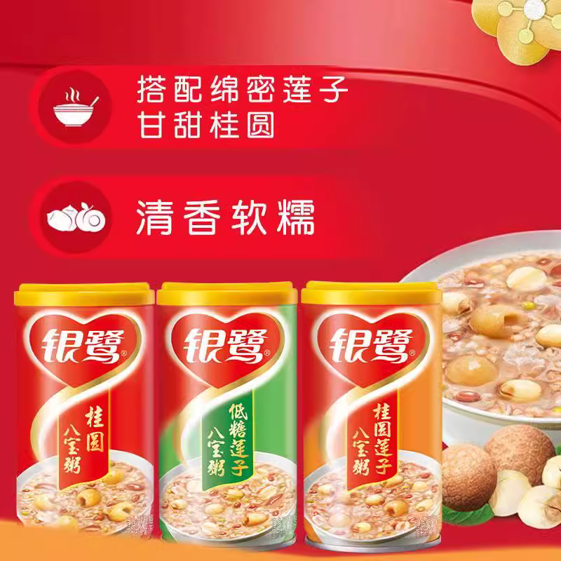 银鹭八宝粥桂圆莲子低糖莲子八宝粥2箱即食学生早餐粥速食粥