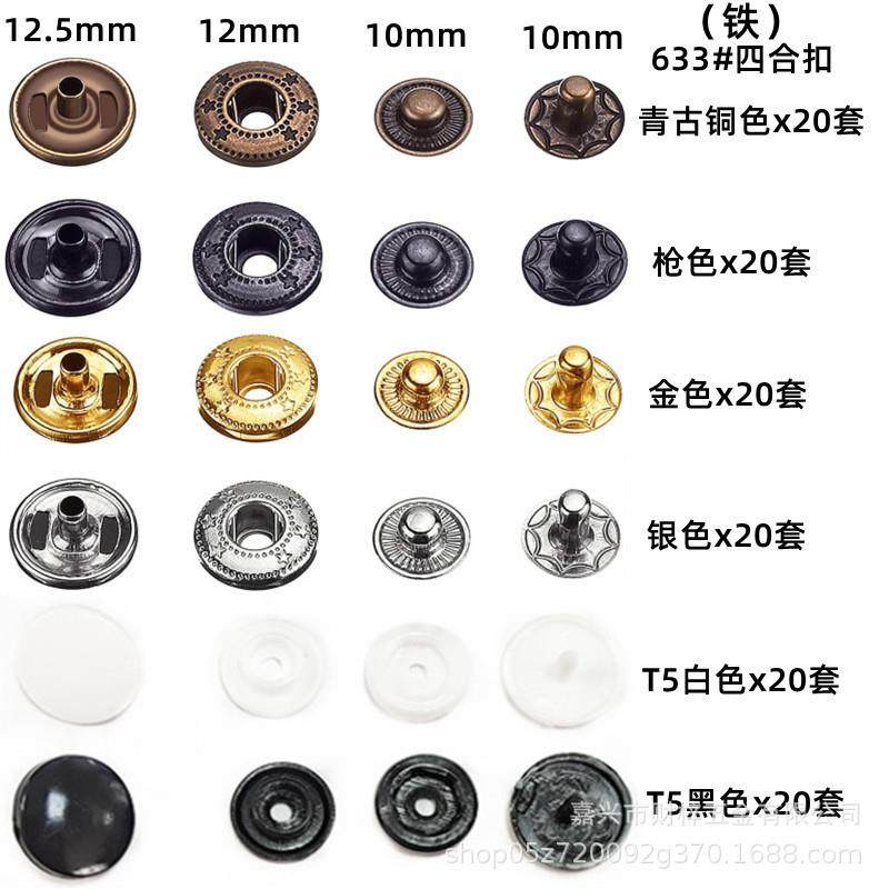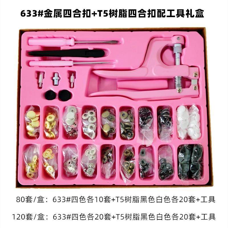 供现货金属633#四合扣钮扣暗扣套盒配套安装工具服装配件
