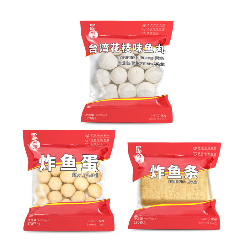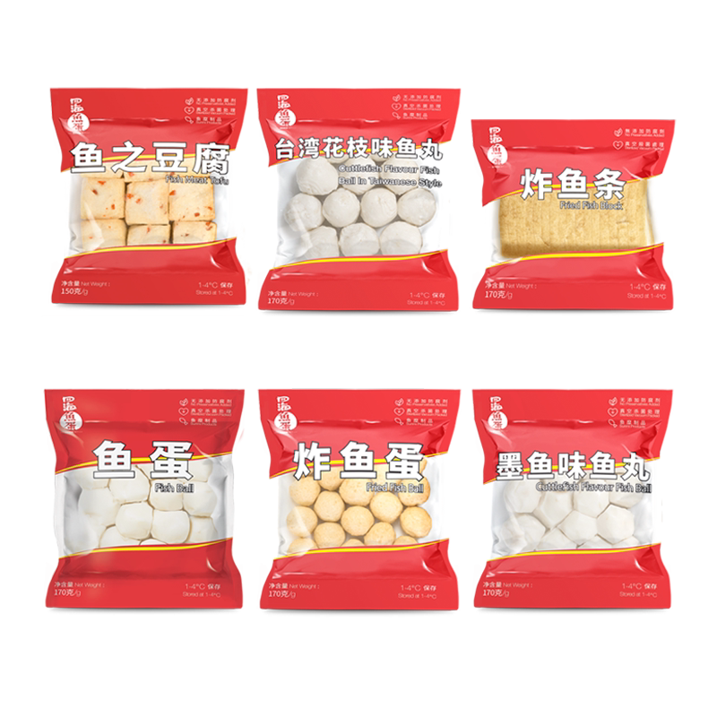 四海鱼蛋 鲜装花枝墨鱼牛肉鱼之豆腐鱼丸 关东煮火锅烧烤6包礼包
