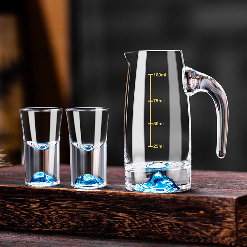 高档蓝山白酒杯套装家用中式一口杯子弹杯水晶玻璃分酒器杯架酒具