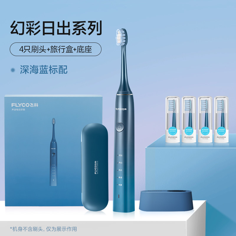 飞科声波电动牙刷成人男女情侣款套装自动电动牙刷FT7105冰晶蓝