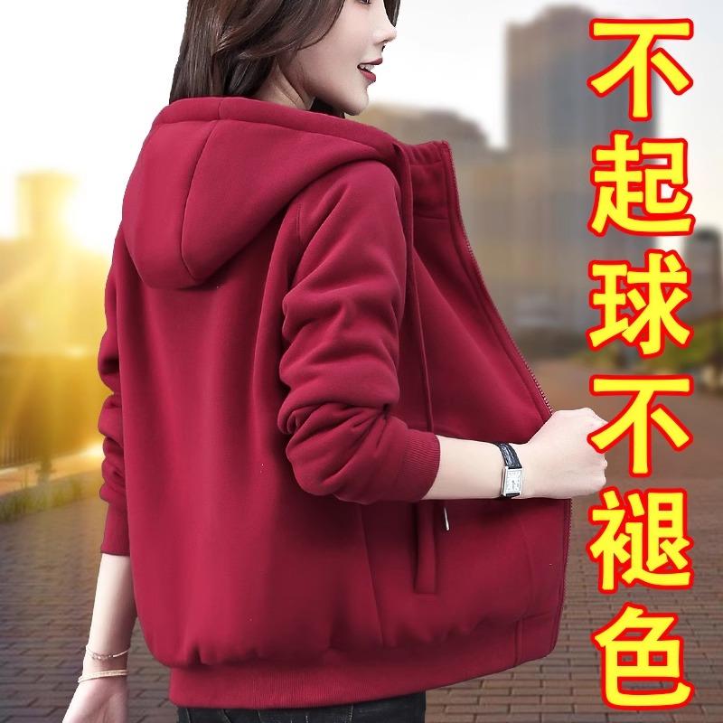 秋冬新款女士保暖加绒拉链开衫外套中年妈妈宽松休闲卫衣2025上衣