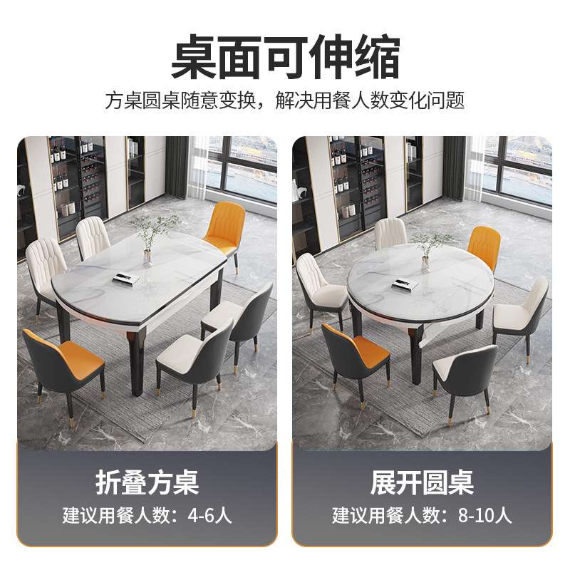 岩板可变小户型折叠伸缩饭桌圆桌轻奢餐桌椅组合现代简约家用实木