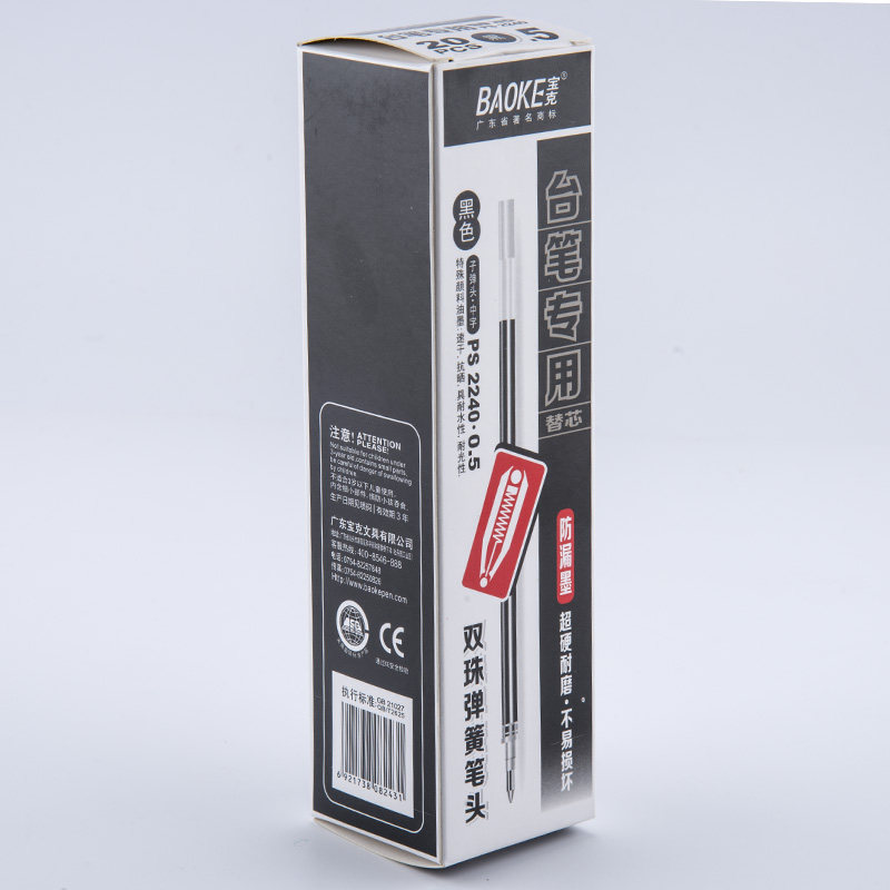 宝克台式签字笔芯黑色0.5mm双珠防漏墨笔头银行柜台笔替芯PS2240