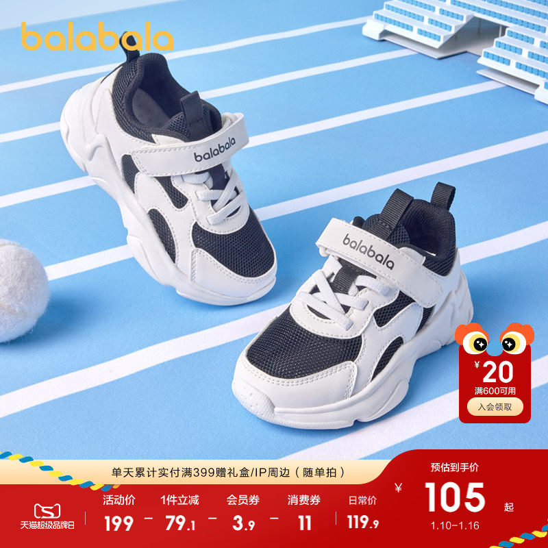巴拉巴拉童鞋儿童运动鞋透气男童女童鞋子潮流秋小白鞋网鞋慢跑鞋