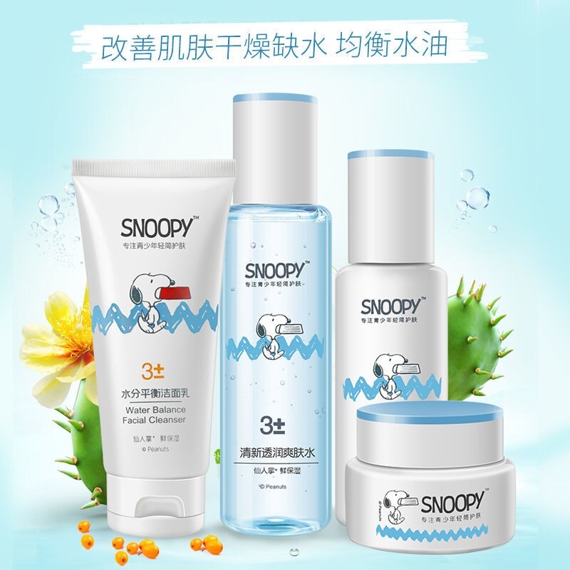 学生青少年男女护肤品SNOOPY史努比清新水润组合套装洁面乳水乳霜