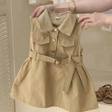 韩系2025夏季新款童装女童无袖连衣裙宝宝时尚工装设计背心裙子
