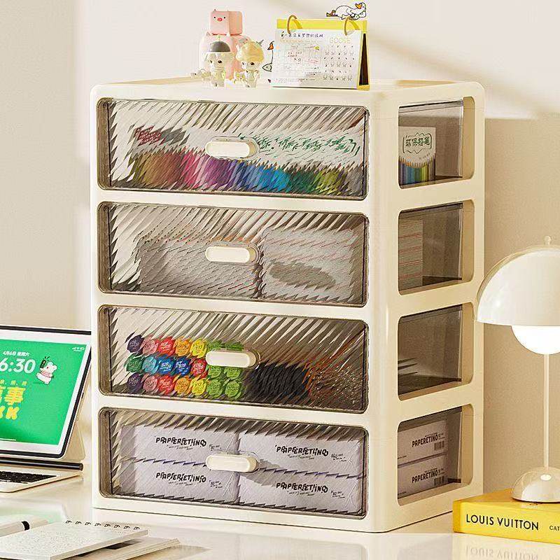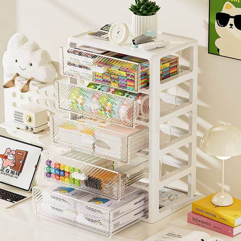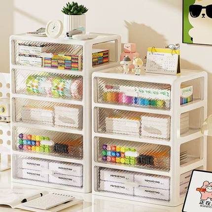 桌面收纳盒抽屉式办公室笔筒盒文具化妆品储物箱多层整理置物架柜