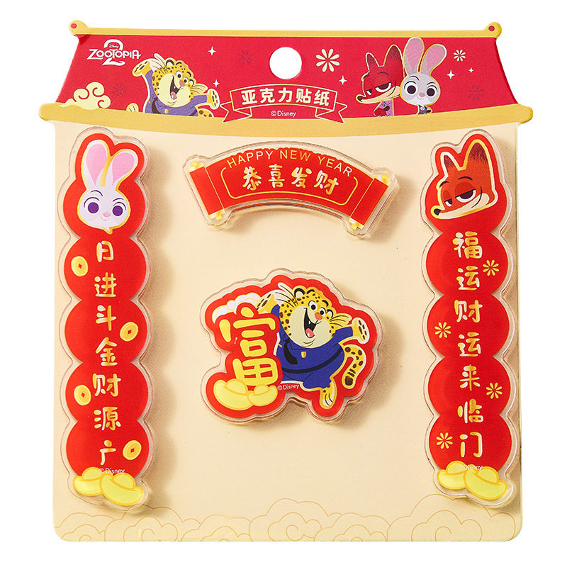 迪士尼新年亚克力磁吸冰箱贴疯狂动物城卡通创意春节对联装饰品