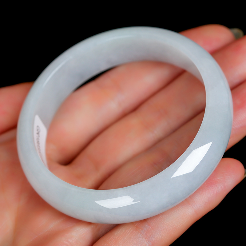 老凤x祥缅甸翡翠手镯冰种白玉手镯冰糯种飘花玉镯子女款手镯正圈