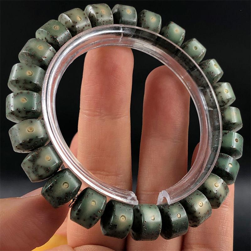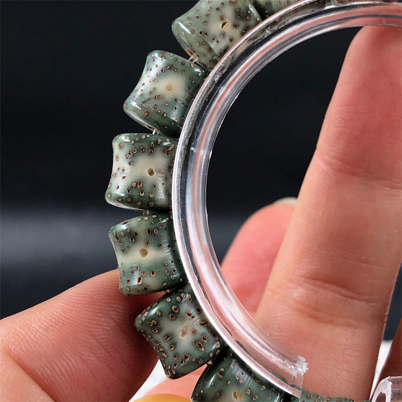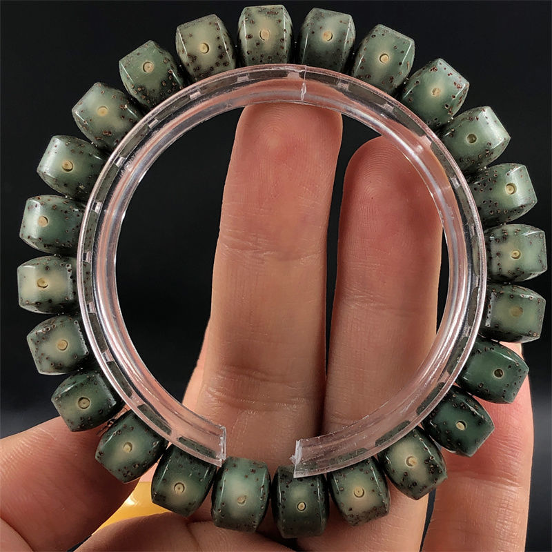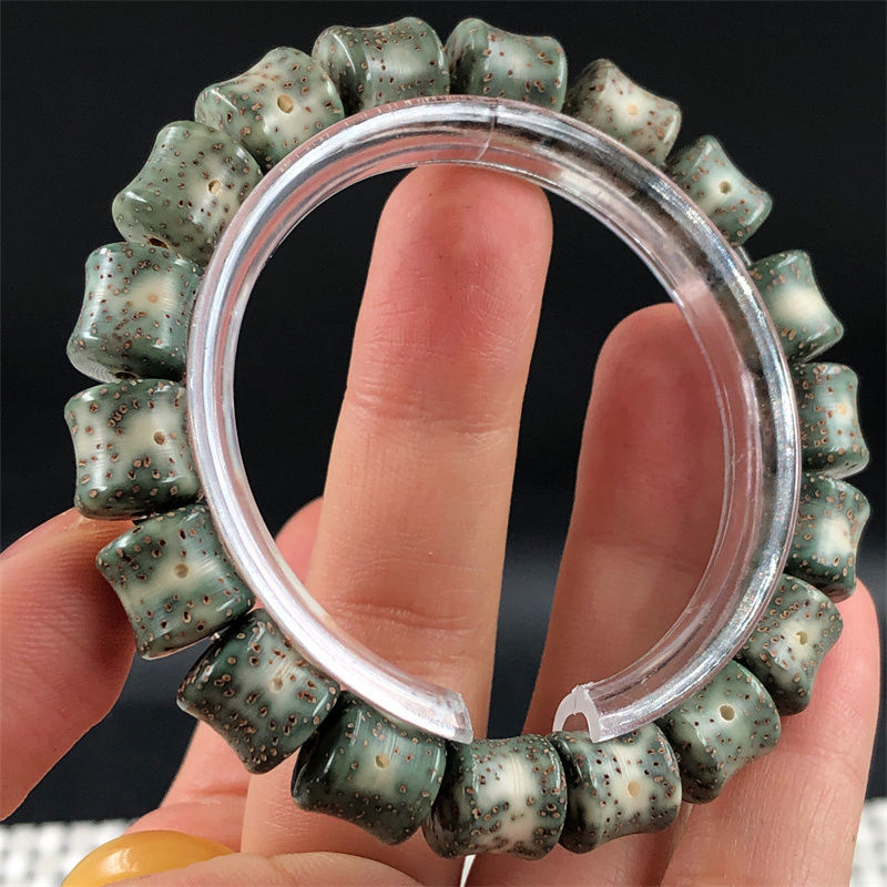 星月手串绿色阴皮鸡油黄顺白竹节经轮大留白海南原生态石玉料菩提
