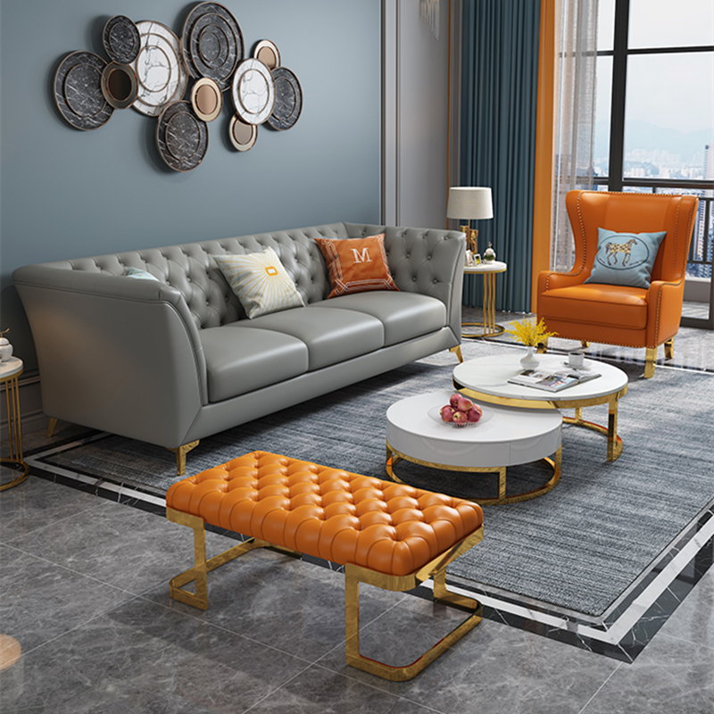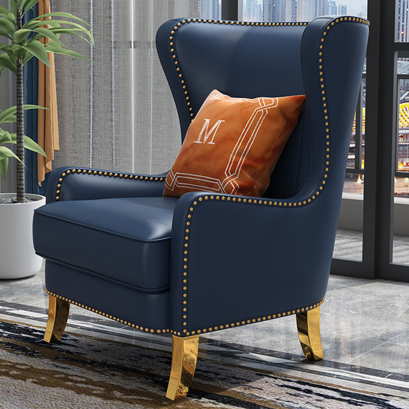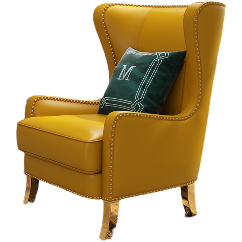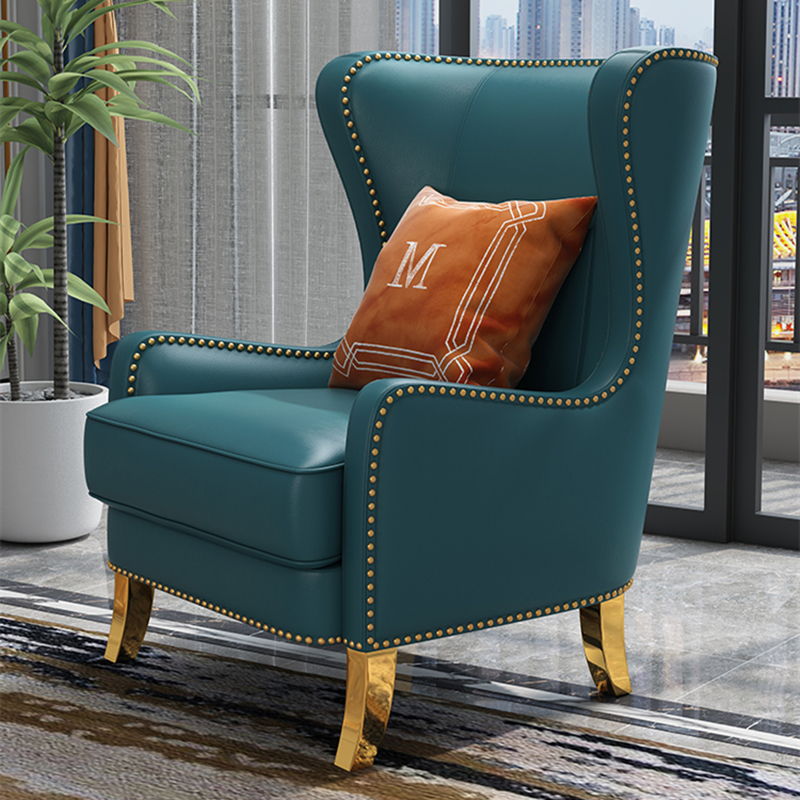 美式轻奢单人沙发椅老虎椅高背椅客厅卧室阳台皮艺休闲椅小户型