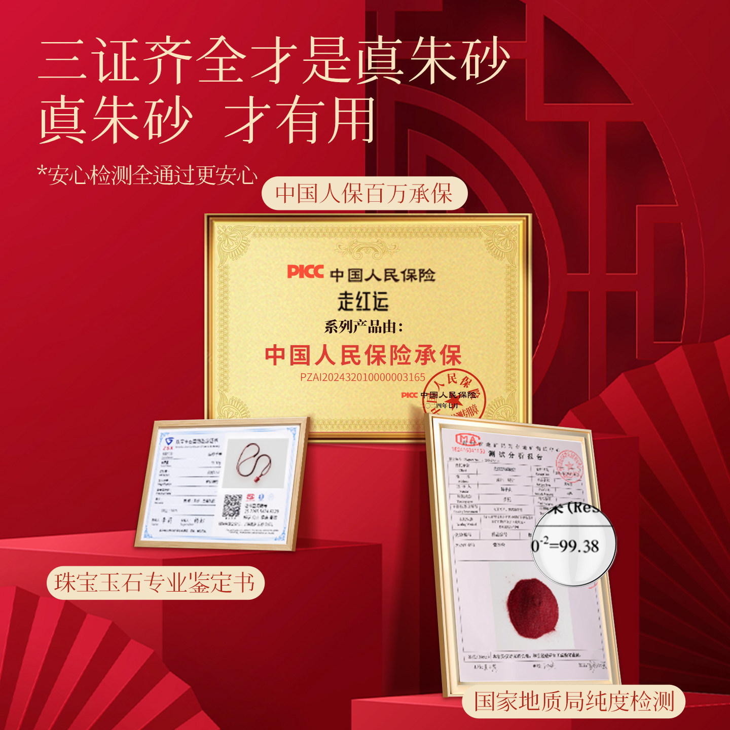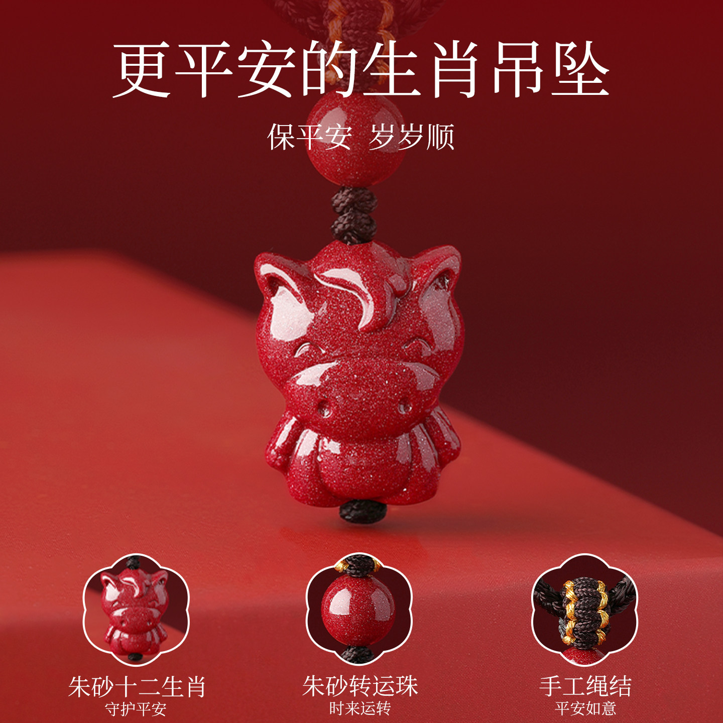 天然朱砂十二生肖吊坠男本命年护身符儿童项链女款正品官方旗舰店