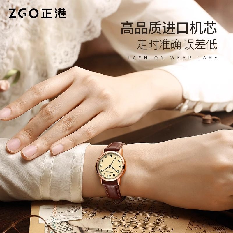 正港公务员考试专用手表静音女士女款初高中学生复古小众轻奢机械