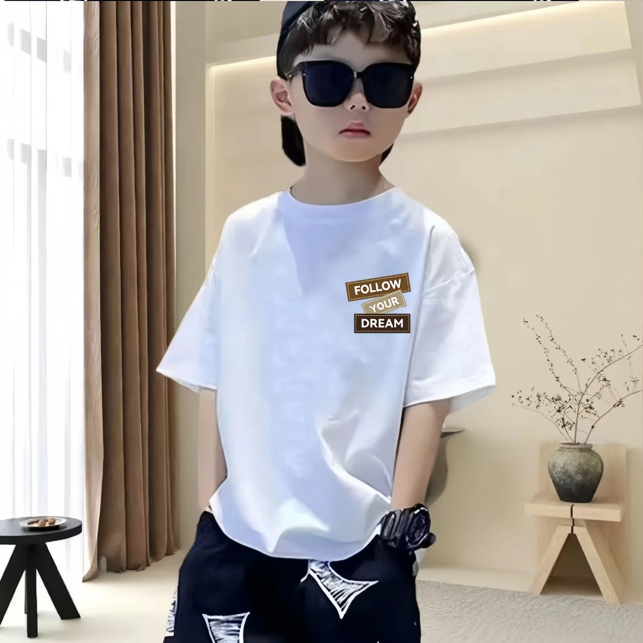 男童纯棉短袖t恤中大童夏季2025新款印花洋气上衣儿童帅气t恤衫潮