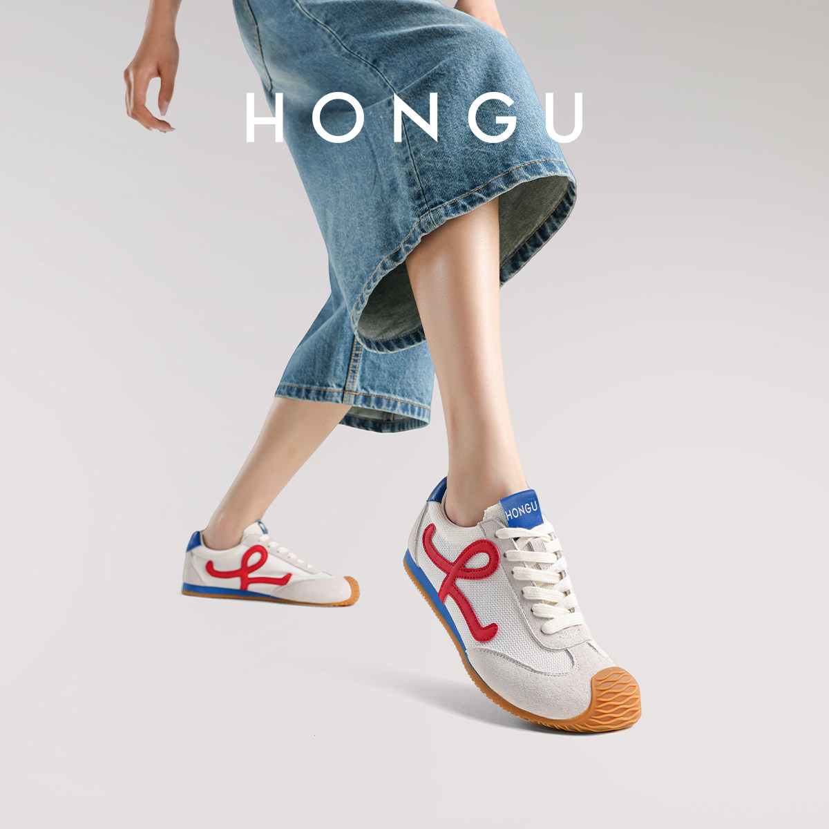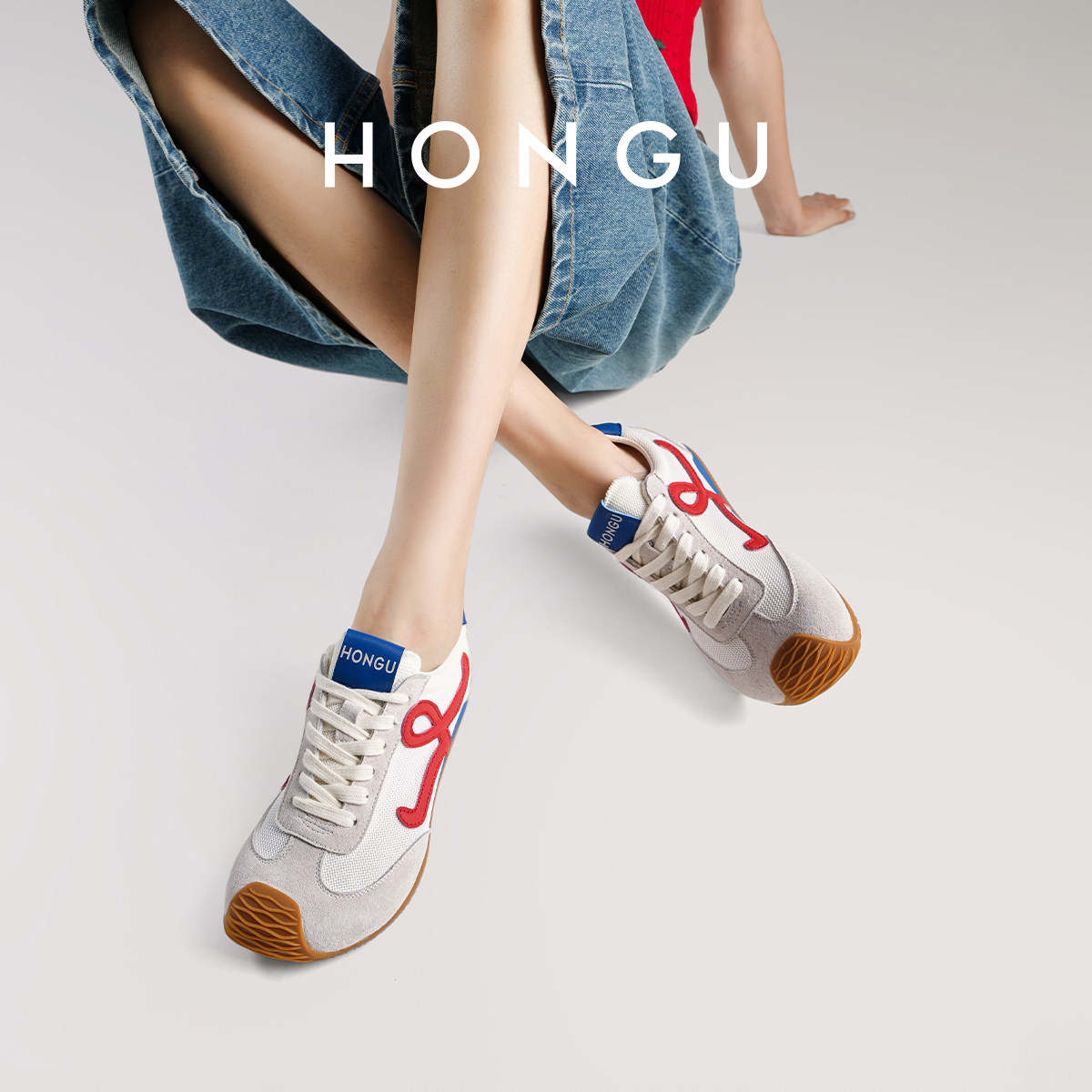 【多巴胺潮】红谷内增高德训鞋女2025夏季新款撞色透气百搭休闲鞋
