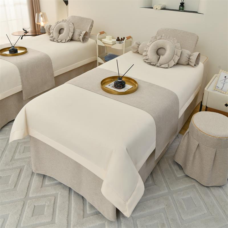 2024高档美容床罩四件套轻奢棉麻美容院专用理疗洗头床套四季通用