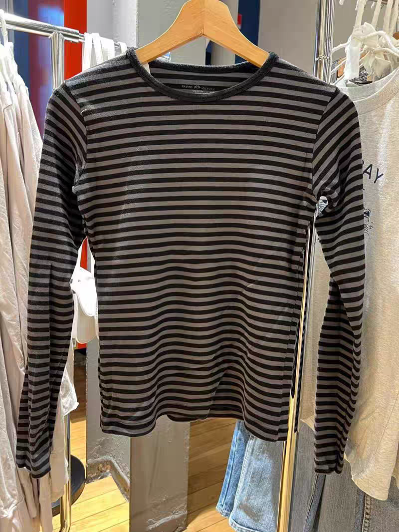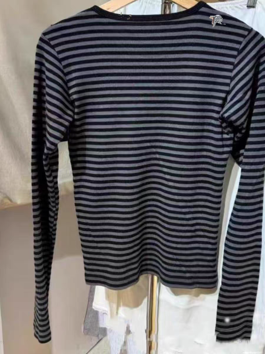 BrandyGirl美式复古条纹圆领bm长袖T恤女辣妹修身显瘦打底衫上衣