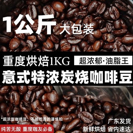 特浓炭烧商用意式特浓咖啡豆重烘焙纯苦浓缩油脂丰富1kg可磨粉
