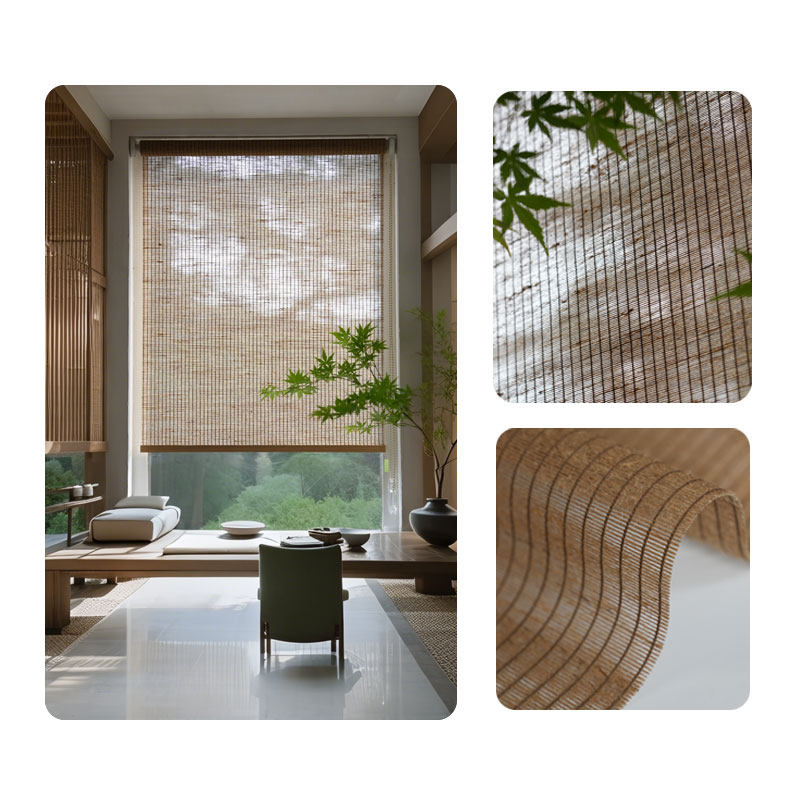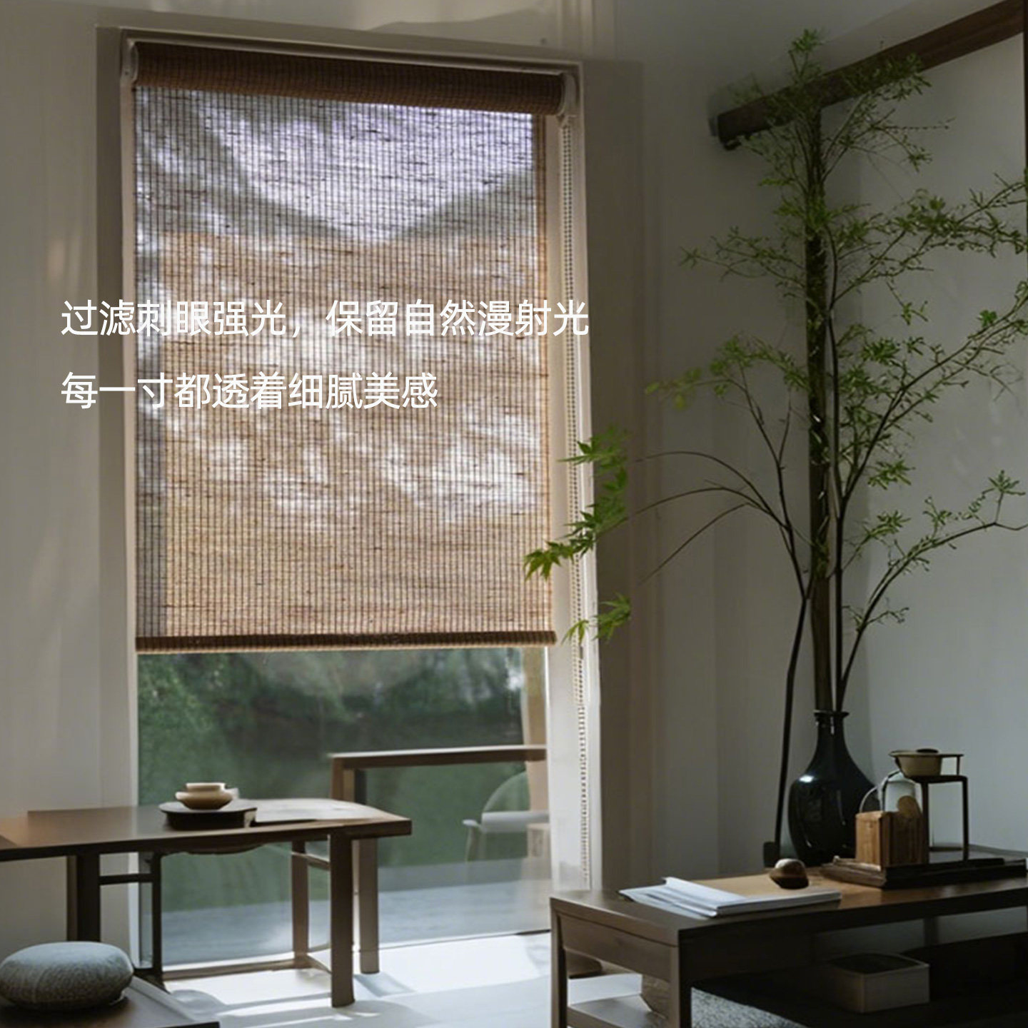 曼莎诺窗帘麻草帘宋式美学禅意复古半遮光免打孔遮阳茶室黄麻卷帘