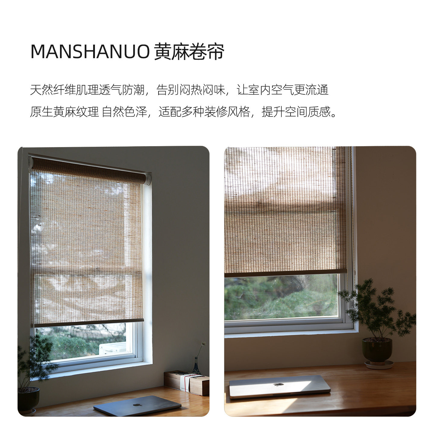 曼莎诺禅意半遮光免打孔黄麻卷帘