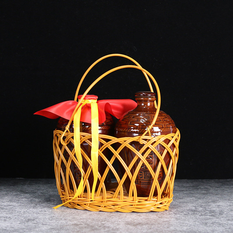创意大师家用果篮酒蓝酒坛提篮仿竹编篮子藤编酒瓶提篮仿古提篮子