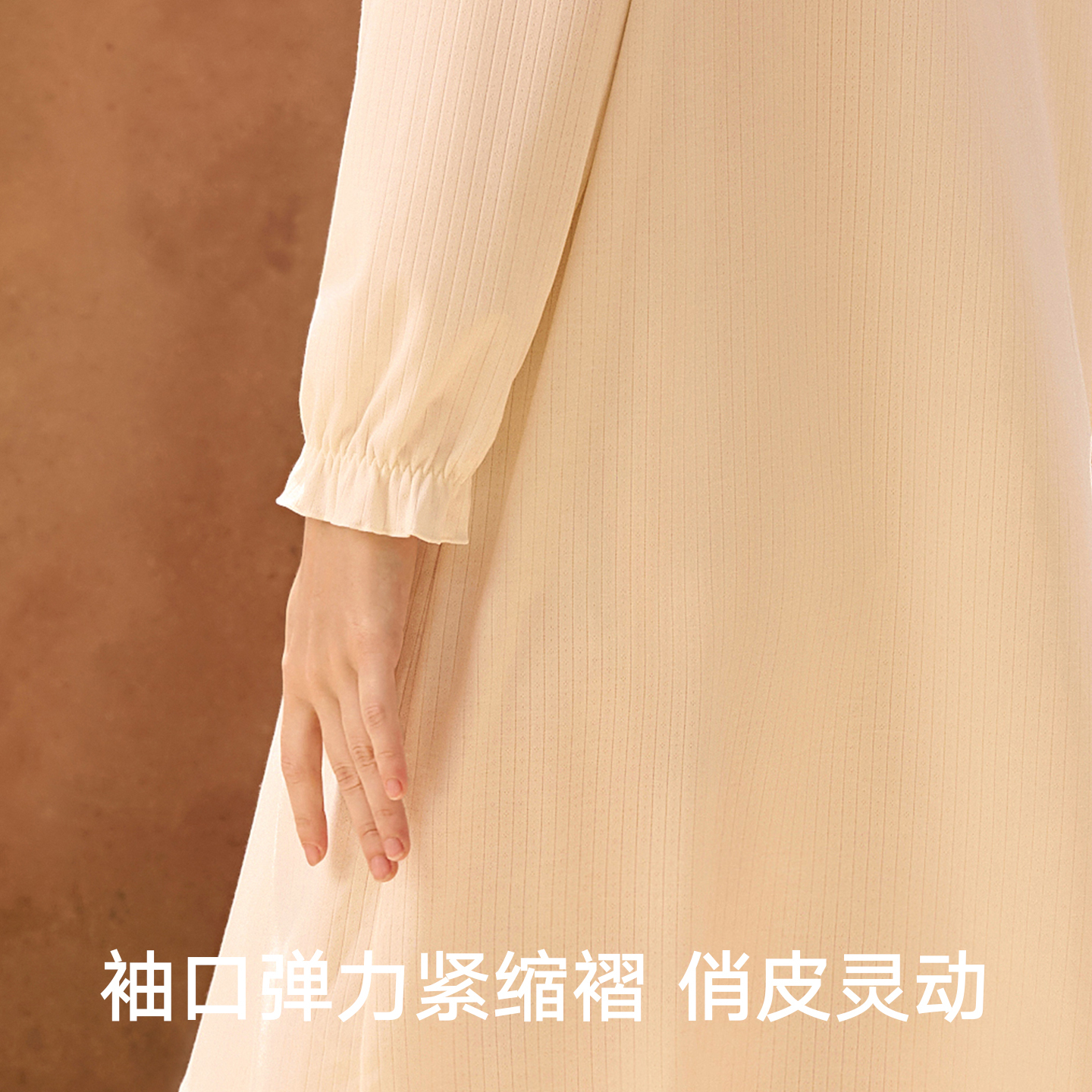 曼妮芬舒适圆领性感刺绣带杯长袖长裙女士家居服睡裙20320794