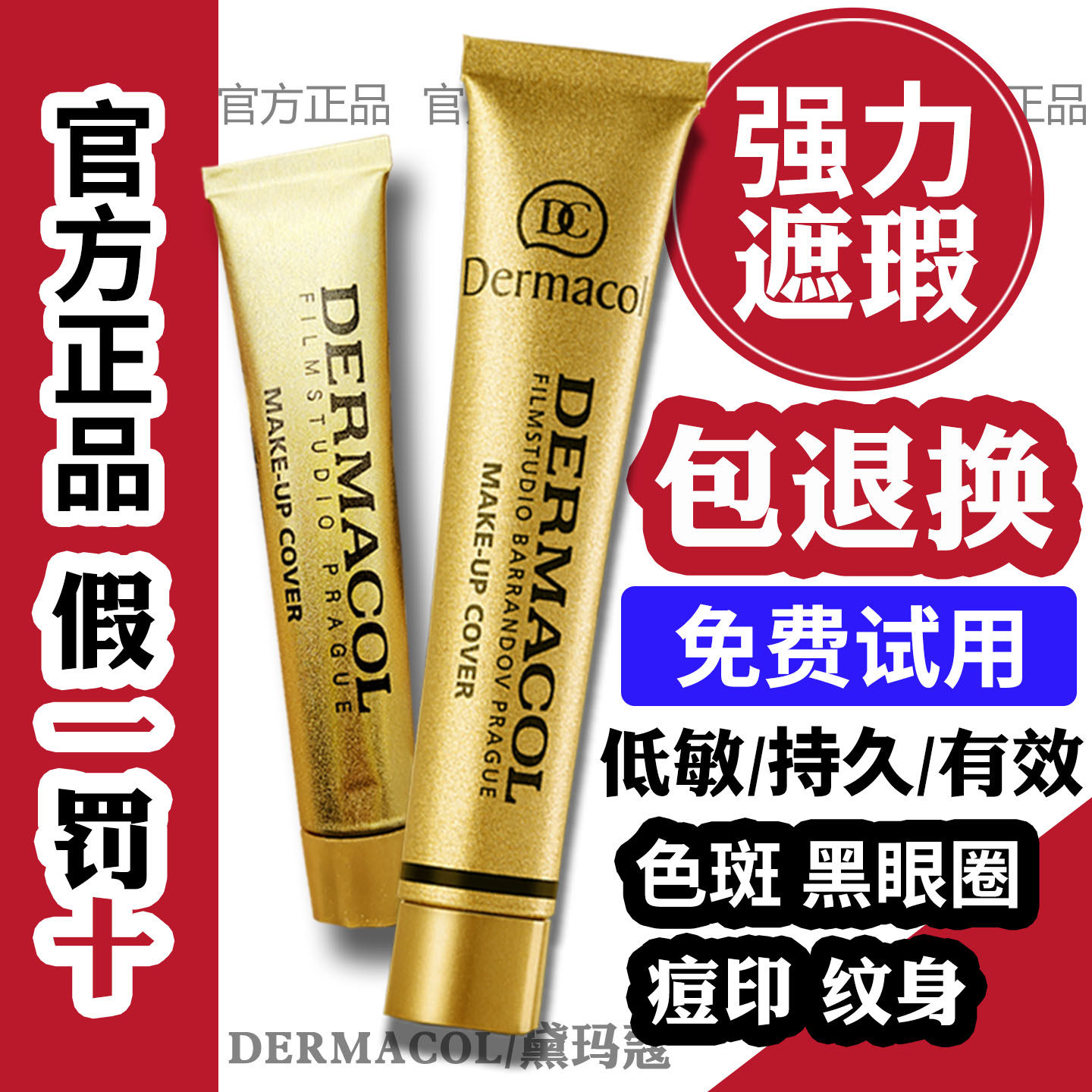 黛玛蔻遮瑕膏小金管强力遮盖痘印斑点纹身黑眼圈脸部巨遮瑕粉底液