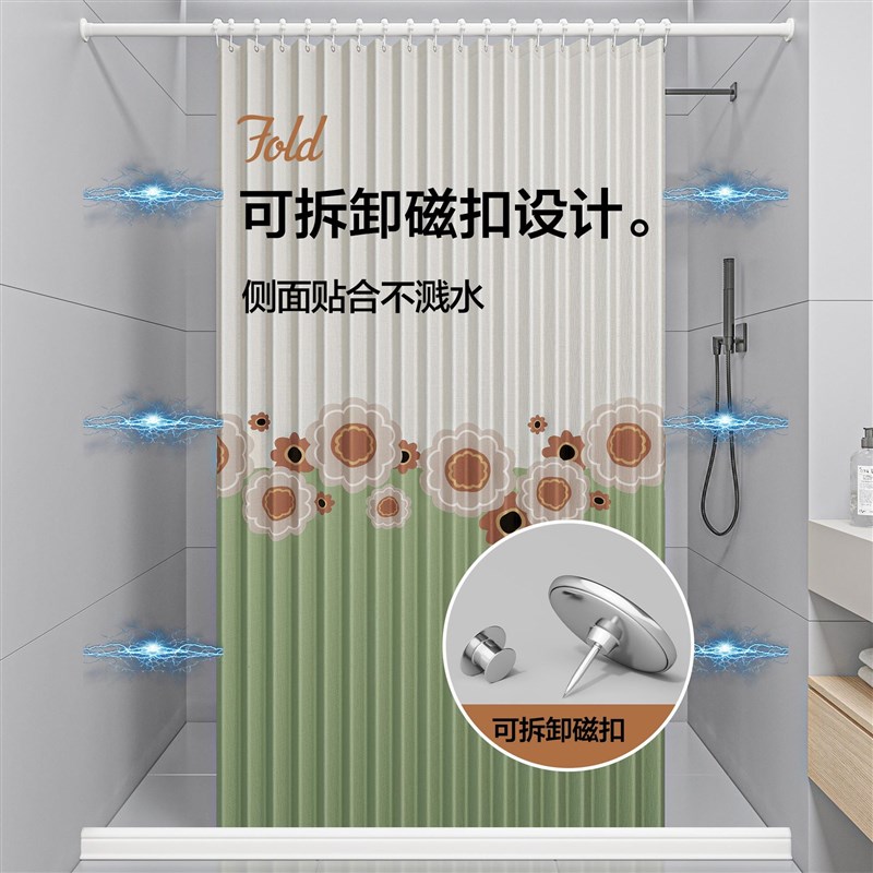 卫生间折叠浴帘防水防霉挂帘洗澡间淋浴房挂帘干湿分离浴室隔断帘