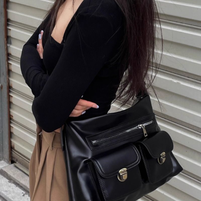 JNNG2025新款复古邮差包学院风帅气大容量托特单肩斜挎包包通勤包