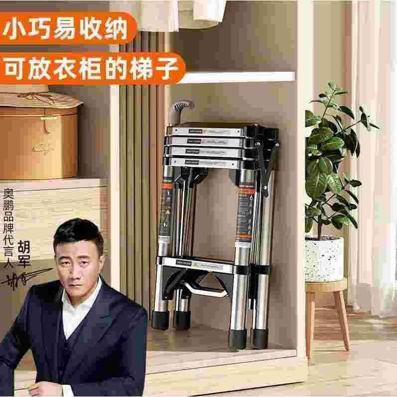 德国进口奥鹏多功能家用伸缩梯子加厚不锈钢折叠小梯子室内便携升