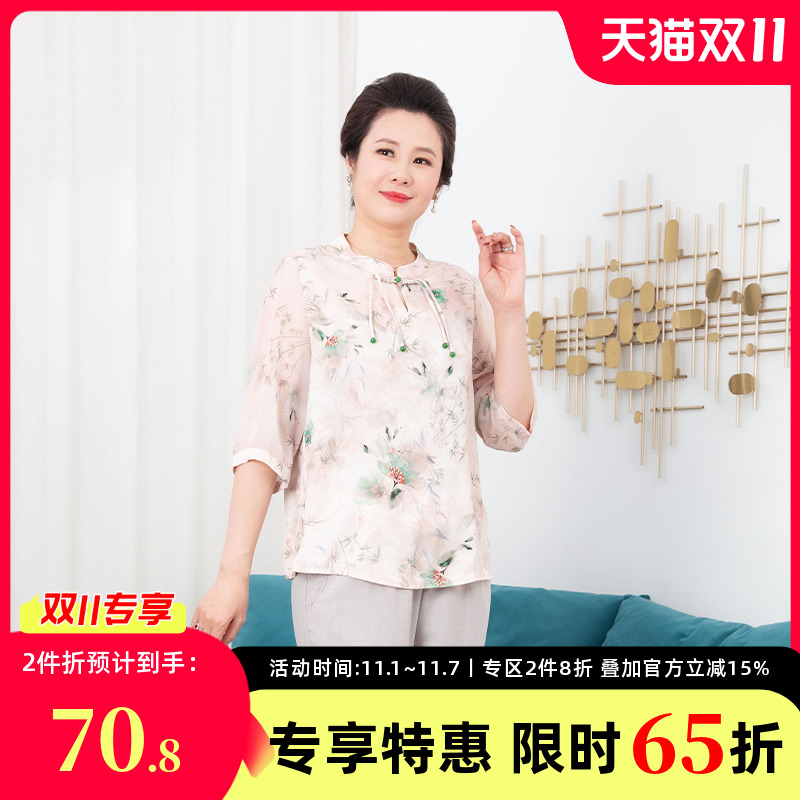 依佈妈妈装2025夏装新中式衬衫中老年女士国风中袖衫大码雪纺上衣