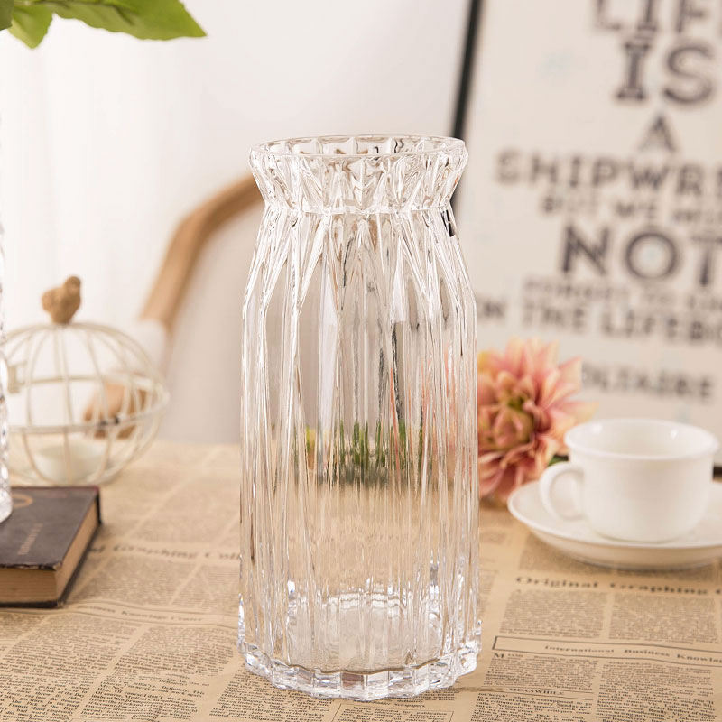 欧式竖棱玻璃花瓶 客厅q彩色透明花瓶 酒店创意干花富贵竹插花摆