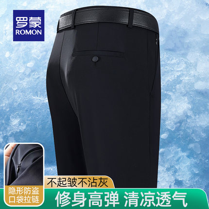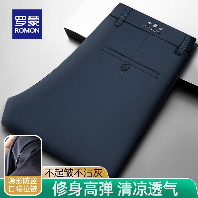 罗蒙休闲裤男夏季薄款中年商务休闲免烫西装裤冰丝高弹修身长裤男