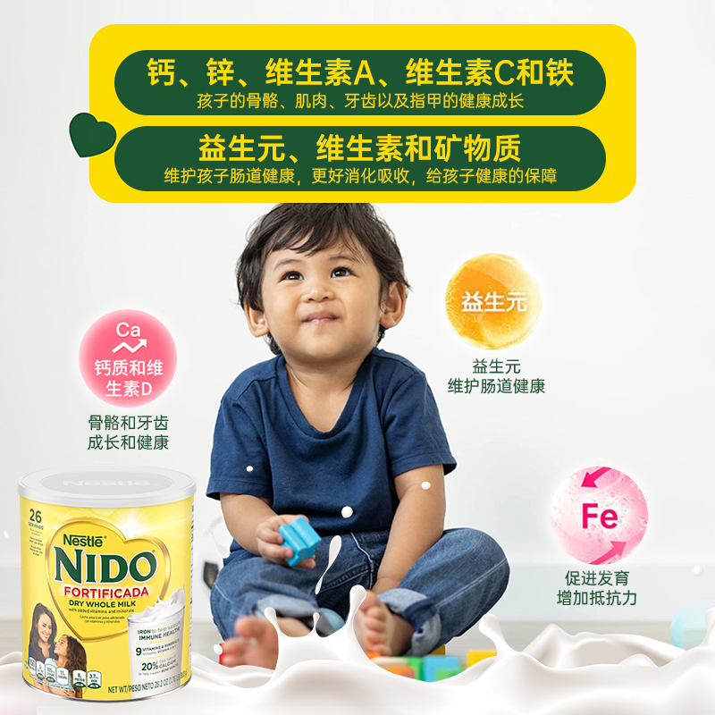 美国雀巢NIDO益生元婴幼儿奶粉 1-3岁全脂即溶婴幼儿奶粉 800g