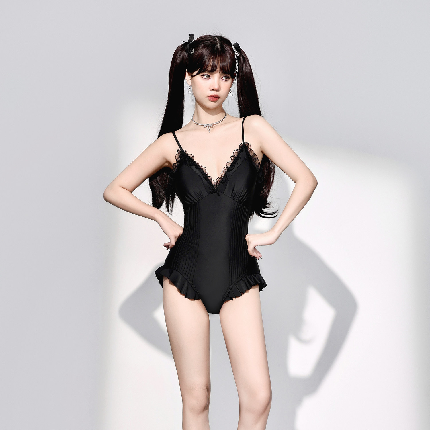 少年齐原创 2024新款辣妹蕾丝度假ins风小众高级连体女温泉游泳衣