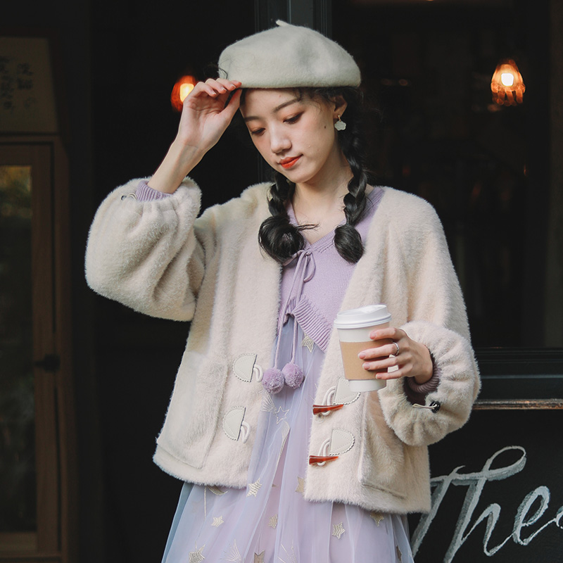 微笑向暖 文艺复古刺绣短款毛呢小外套 牛角扣冬季长袖棉服大衣
